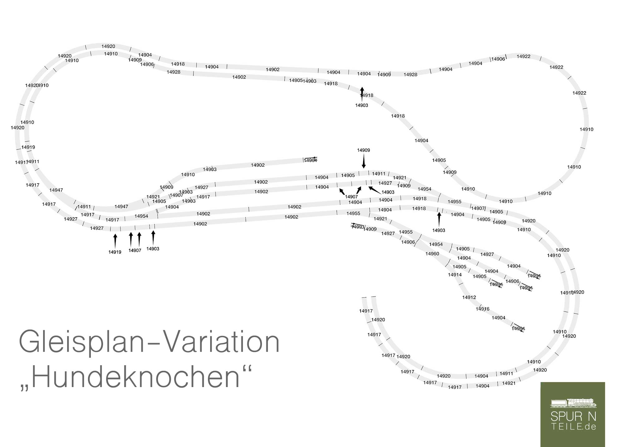 - Ein Bau ist auch ohne Kehrschleifenmodule möglich, jedoch entfallen die Querungen im Bahnhofsbereich in diesem Fall. Die Anlage fungiert dann als "Hundeknochen".
